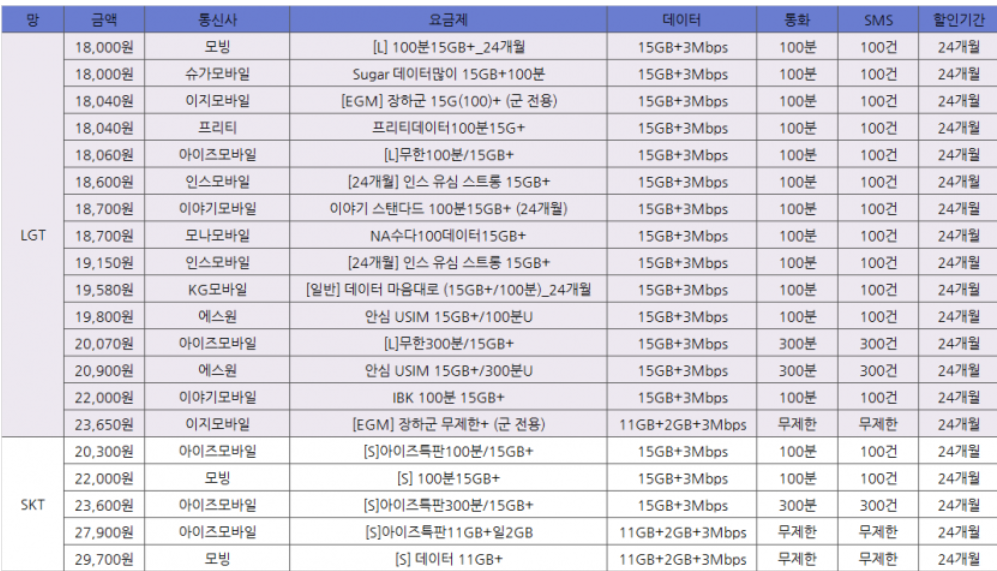 - 특징: LG U+의 안정적인 통화 품질, 다양한 데이터 및 음성 요금제, 고객 맞춤형 서비스 제공